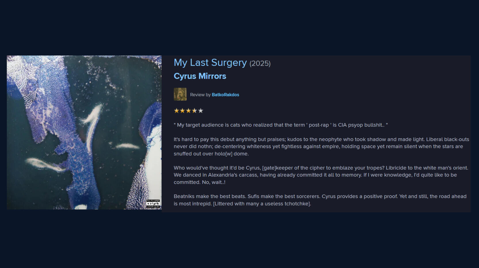 ↓ Stream "My Last Surgery" by clicking the image ↓